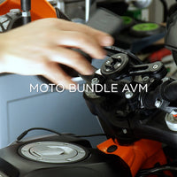 Monteer de houder in de Moto Bundle AVM op het stuur van jouw motorfiets. Vervang de montagekop door de Anti Vibration Module om de trillingen die jouw telefoon vanaf de motor bereiken te verminderen. Het telefoonhoesje kan nu eenvoudig op de trillingsdemper worden geplaatst en vast gezet worden door het 90° met de klok mee te draaien.